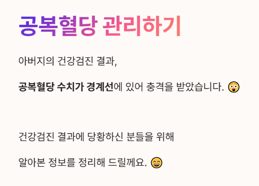 최근 아버지가 건강검진을 받으셨는데, 공복혈당 수치가 경계선에 있다는 결과를 받으셨어요. 😥