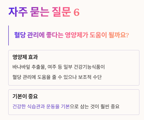 Q6: 혈당 관리에 좋다는 영양제가 도움이 될까요?