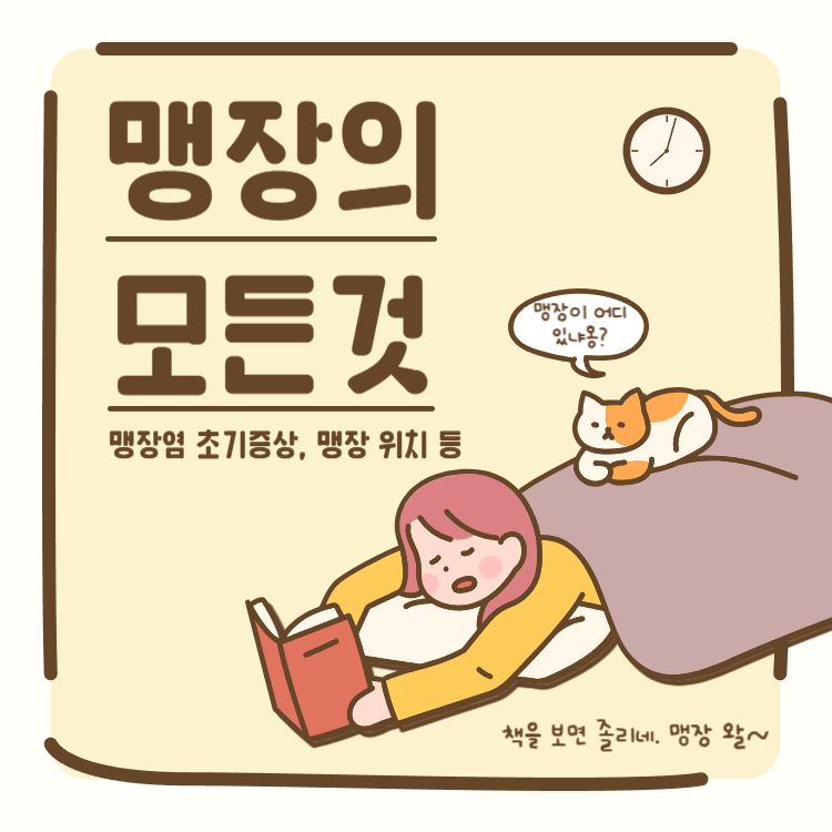 맹장염 초기증상부터 맹장 위치, 주요 증상, 원인, 자가진단 방법, 수술 과정까지 한눈에 정리했습니다.