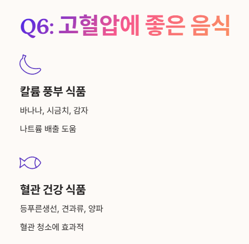 Q6: 50대 고혈압에 좋은 음식은 무엇인가요?